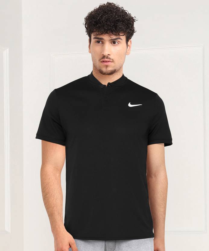 NIKE Solid Men Mandarin Collar Black T-Shirt
