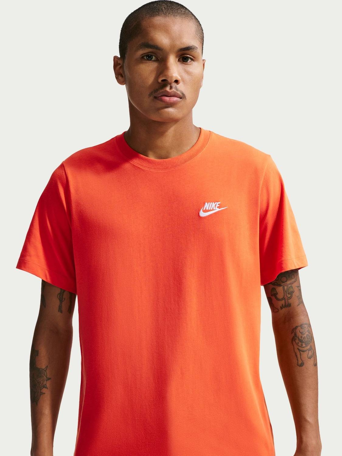The Nike Sportswear Club T-Shirt is made with our everyday cotton fabric and a classic fit, for a familiar feel right out of the bag. An embroidered Futura logo on the chest provides a signature Nike look.