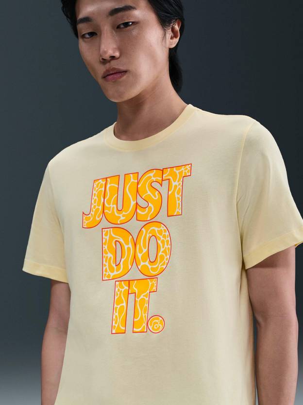 NIKE Printed Men Round Neck Yellow T-Shirt