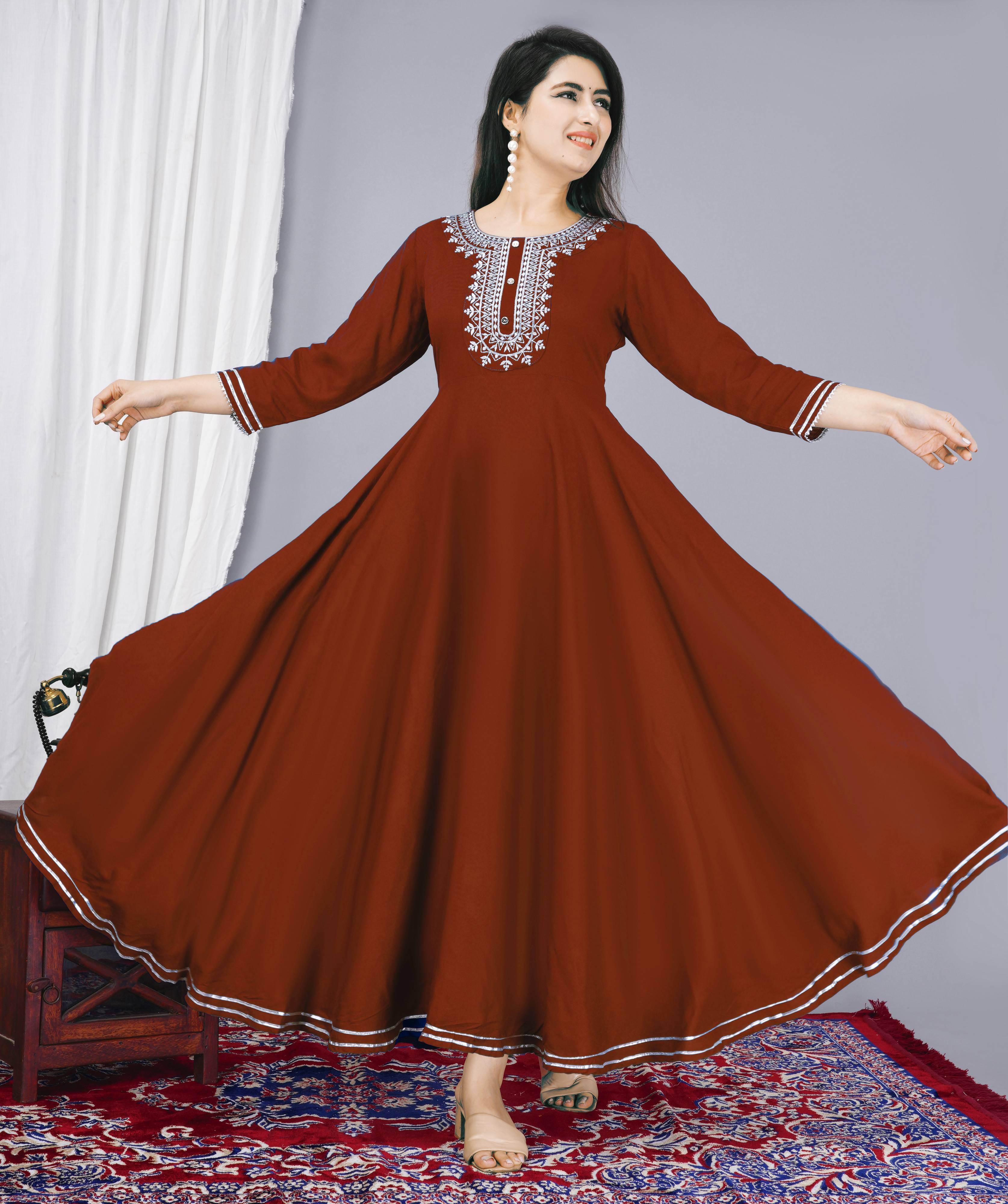 Solid Viscose Rayon Stitched Anarkali Gown (Brown)