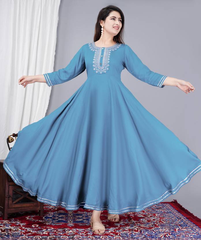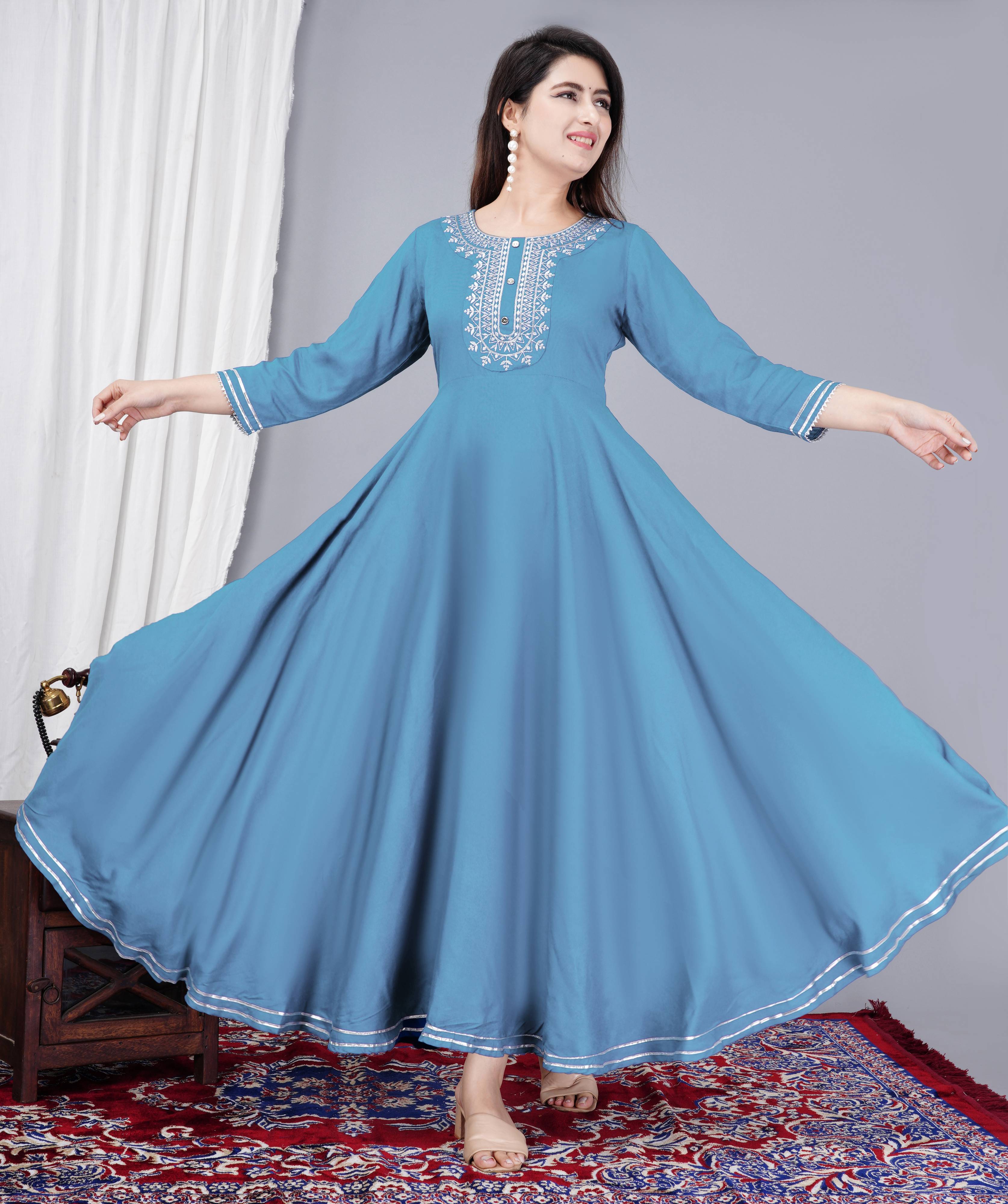 Solid Viscose Rayon Stitched Anarkali Gown (Light Blue)