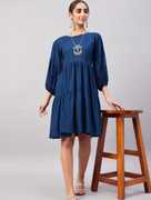niklav Women Fit and Flare Blue Mini/Short Dress