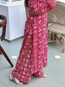 Lightweight rayon fabric, V-neckline with long sleeves, All-over floral print, Side slits for ease of movement, Coordinated bottom wear included.