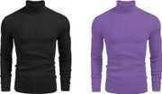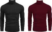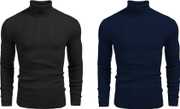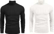 Men Solid High Neck Black, White Sweater