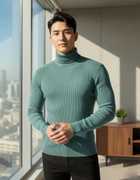 Men Solid High Neck Blue Sweater
