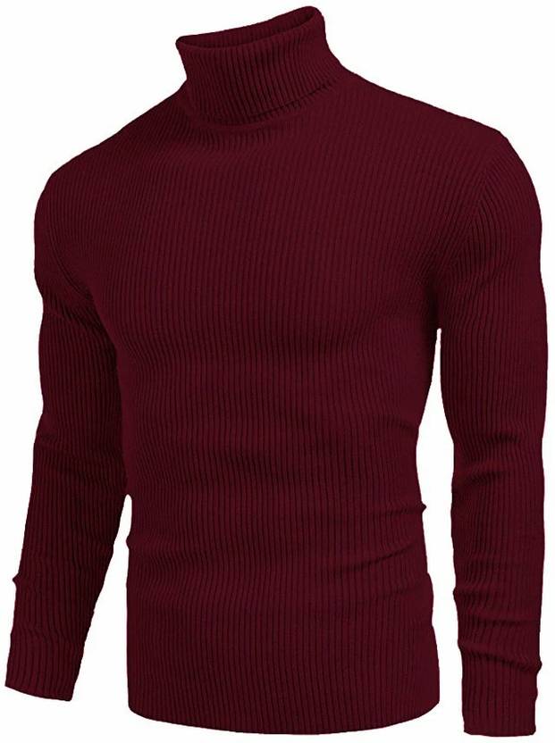 nikline Solid High Neck Casual Men Maroon Sweater