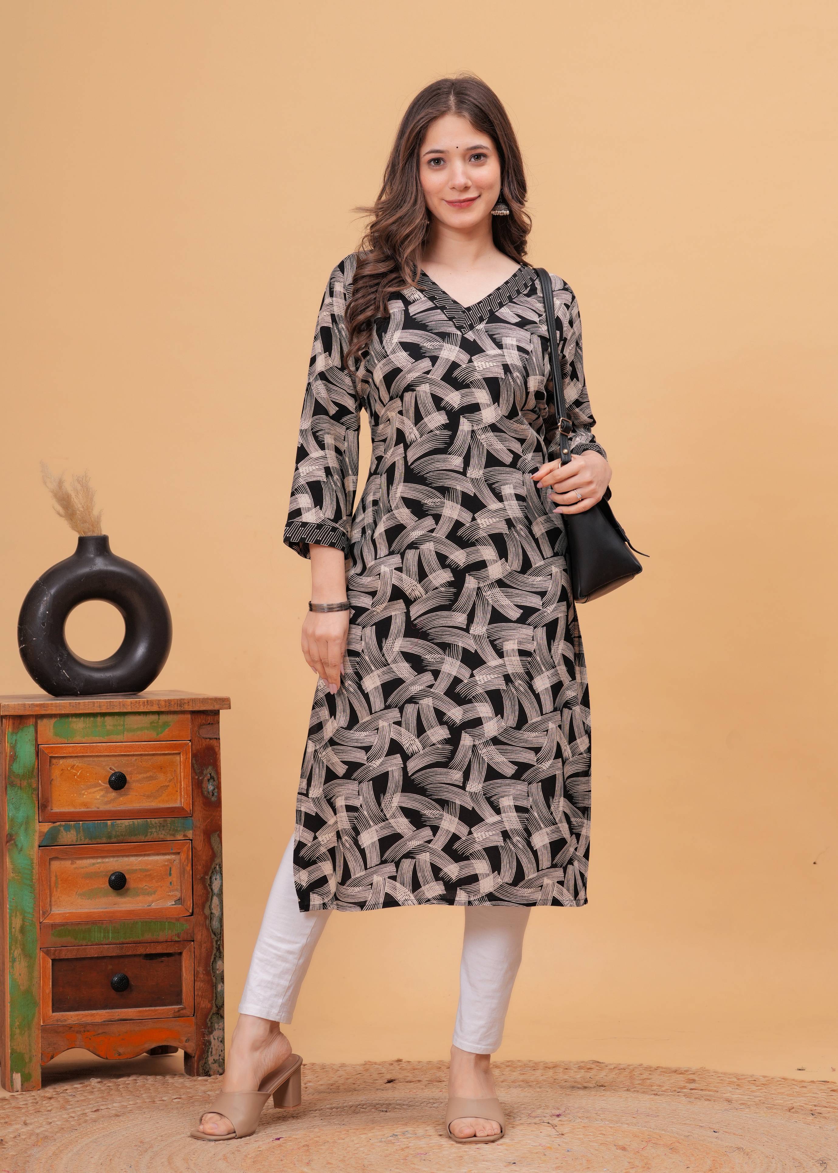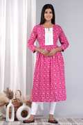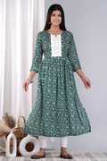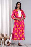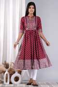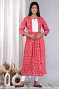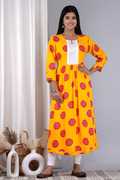 NIKORA Women Printed Flared Kurta (Yellow, Red, White)