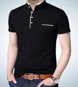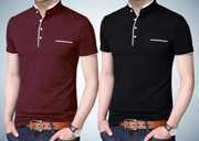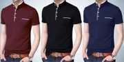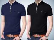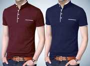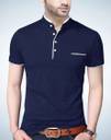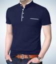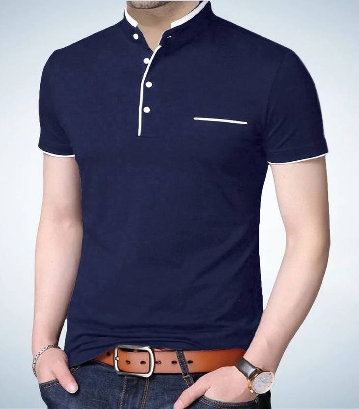 Nikshi Solid Men Mandarin Collar Blue T-Shirt