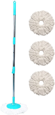Roll n fit is a innovative product introduced. The is the upgraded version of clip and fit mop which are hard to use. The new roll and fit mechanism is introduced which makes the user to simply roll the knob and remove the refill. The refill of this product is of microfiber material. The microfiber refill absorbs 3 times more liquid than normal cotton, it absorbs and cleans liquid or oils or hair or dust and bacteria. The mop is having an extendable handle, which makes it easy to use by adjusting to your height. Now no more back or shoulder pain. The product is made from high grade plastic material which with powder coated metal handle which ensure longer durability and usage.