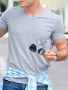 Men Solid V Neck Cotton Blend Grey T-Shirt