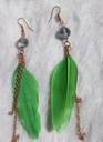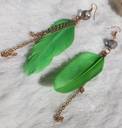 Green Feather Earrings with Gold Chain and Crystal Bead