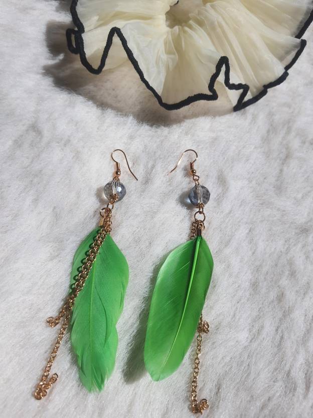 Add a bold and boho-chic statement to your look with these stunning Green Feather Earrings. Featuring soft green feathers, delicate gold-tone chains, and shimmering crystal bead accents, these drop & dangler earrings bring together elegance and earthy charm. Crafted from durable alloy, they are lightweight and comfortable for all-day wear. Perfect for parties, festivals, or a stylish everyday outfit, these earrings are a must-have for anyone who loves unique and artistic accessories.