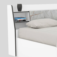 The @Home by Nilkamal marbito engineered wood box bed has a marble finish laminate to enhance the aesthetics of your bedroom. The built-in shelves add convenience and style to this bed, making it an ideal choice for your home. This bed has melamine-finished engineered wood construction that makes it sturdy and durable. It features four storage compartments for you to store your home linens and toys to keep them organised.
