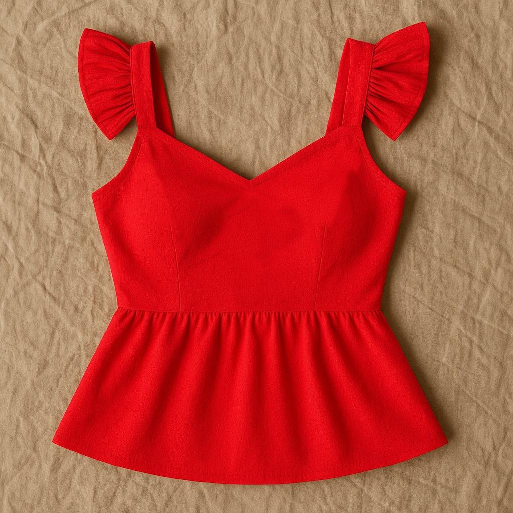 Elevate your wardrobe with this chic Ruffle Strap Peplum Top, perfect for casual days or dressy occasions. Featuring a soft crinkle-textured fabric, this sleeveless blouse is designed with flattering wide ruffle straps and a sweetheart neckline to enhance your silhouette. The peplum waist adds a feminine touch, providing a stylish flare that pairs beautifully with jeans, skirts, or shorts.