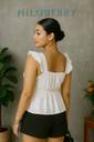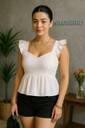 Party Ruffled Sleeves Solid Women White Top