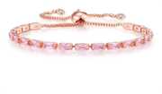 Rose Gold Plated American Diamond Adjustable Bracelet, Stylish Fashion Jewellery Gift for Girls & Women, Pink