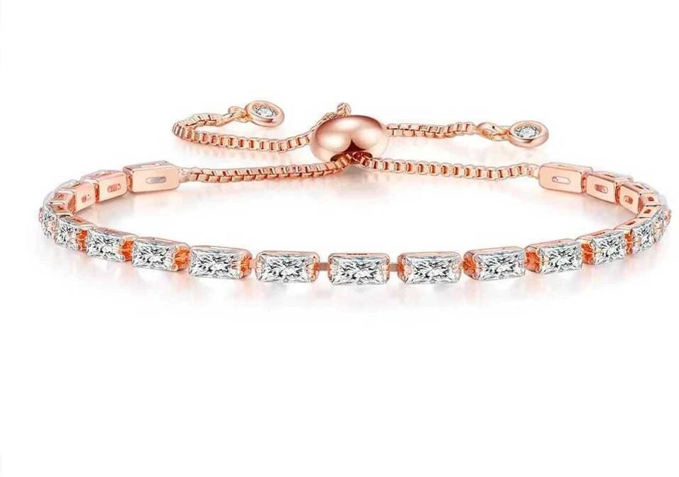 Rose Gold Plated American Diamond Adjustable Bracelet, Stylish Fashion Jewellery Gift for Girls & Women, White