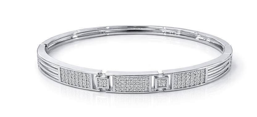 Add a touch of timeless elegance to your look with this silver plated kada bracelet, beautifully encrusted with premium American Diamonds. Its modern geometric design offers a bold yet graceful appeal, making it perfect for both daily wear and festive occasions. Crafted with an anti-tarnish finish, this kada ensures long-lasting shine and comfort, making it an ideal choice for women who love to sparkle every day.