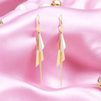The design features a long length, which means the earrings stay visible even when your hair is down or when viewed from a distance. When you wear them, they immediately stand out and draw attention to your overall look. This feature allows you to pair them with both simple and dressy outfits.