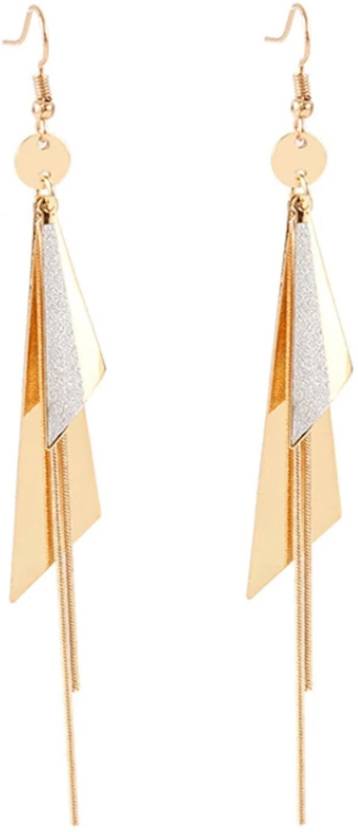 Nilu's Collection Geometric Triangle Long Drop Earrings with Metal Chaon Tassel Dangle Drop Earrings for Women Metal Drops & Danglers