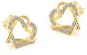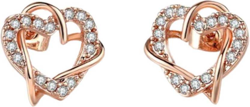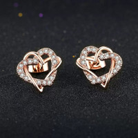Nilu's Collection New Fashion Heart Shape Cubic Zirconia Hollow Sweet Stud Earrings Crystal Alloy Stud Earring