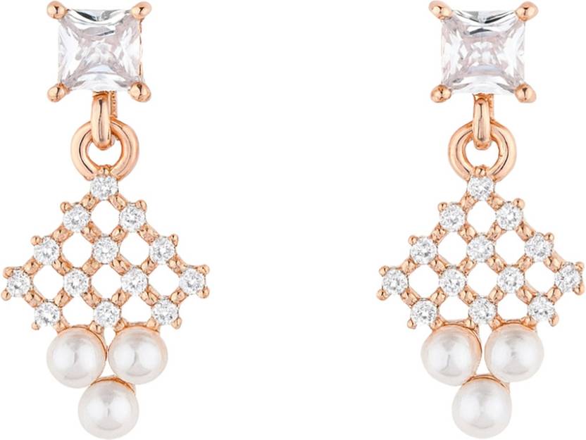 Rose Gold Plated Pearl Drop Earrings with AD Stones Earrings for Women & Girls