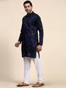 Top Type : Kurta, Bottom Type : Pyjama / Pant | Top Fabric : Cotton Blend, Bottom Fabric : Cotton | Pattern : Embroidered, Sequined, Solid | Colour : Navy Blue | Wash Instruction : Hand Wash Only | Occasion : Casual, Festive, Party, Wedding | Package Contain : 1 Kurta & 1 Pyjma