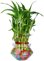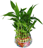 Offering consistent development, this bamboo plant is a sophisticated addition including a stylishly crafted circular glass vase or bowl. Because this plant requires minimal maintenance, it can withstand UV light and flourish indoors, making it a convenient and fashionable option for any household or workplace. This bamboo plant is easy to grow and stays green all year, but it also represents luck and positivity. By consistently tending to this bamboo plant and replacing the water up to twice a week, it will thrive and add a touch of green to your environment with little work.