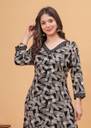 A Black Printed Kurti offers a striking and sophisticated look with its deep black base, accented by bold or delicate prints. Made from soft, breathable fabric, it ensures comfort while elevating your style. The prints, ranging from floral to geometric or abstract designs, add a modern yet timeless touch to the classic black color. Perfect for casual outings, office wear, or festive occasions, it can be paired with leggings, palazzos, or jeans for a chic and versatile look. This kurti combines elegance and modern flair, making it a must-have in any wardrobe.