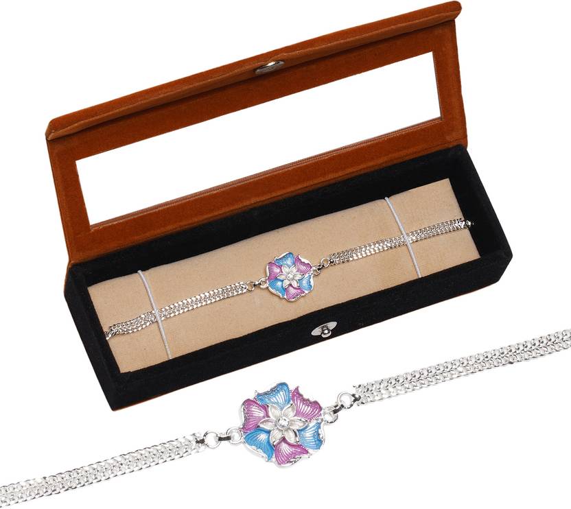 Celebrate the festival of special bond of brother - sister in a joyful way with an elegant silver rakhi that will elate your dear one. Raksha bandhan also known as bond of protection is an occassion to flourish love, care, affection and sacred feeling of brotherhood. So, this raksha bandhan, strengthen the very special bond between you and your brother/ brothers by tying this gorgeous silver rakhi on his wrist. This beautiful silver rakhi is traditionally designed by our expert artisans which make it unique in its own way. Each silver rakhi comes in a beautiful velvet box, making it a rich token of love.