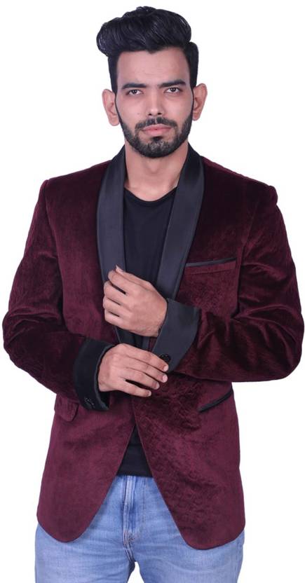 Men Solid Single Breasted Festive & Wedding Blazer (Maroon)