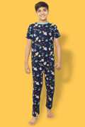 Featuring a well-coordinated set, this boy's T-shirt and pyjama set blends playful style with everyday comfort. Its eye-catching prints and lively themes bring a fun touch, making it a great choice for casual wear. Also, this neatly paired top and pyjama set creates a put-together appearance, ensuring a fresh and stylish look for different activities. Whether for a day indoors or bedtime, this set adds charm and ease.