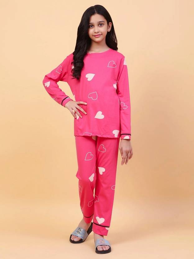 Introducing the Girls Pink Night Suit, a charming and comfortable choice for your child's bedtime! This night suit features a playful print on a lovely background, making it a fun addition to any wardrobe. Crafted from 100% cotton, the fabric is super soft, ensuring a gentle and soothing feel against the skin. Half sleeve top and full-length pants provide a relaxed fit, allowing for easy movement and maximum comfort throughout the night. Available in sizes 6-14 years, this night suit is perfect for ensuring a cozy and stylish sleep experience for your little one.
