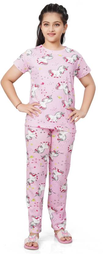 Ninos Dreams Girls Printed Pink Top & Pyjama Set