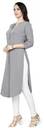 One of the key highlights of this kurta is its 3/4 folded cuff sleeves with double button placement, which add a trendy and contemporary touch to the garment. The sleeves with buttons give a chic and fashionable appearance, making it suitable for both casual and semi-formal events.