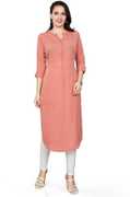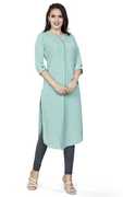 • Style: Straight, Length: Calf Length, Type of Sleeves: 3/4 Fold Cuff with Buttons Sleeve, Neck Style: Open Mandarin Collar, • Material: Made from high-quality fabric - Poly Rayon Blend, this straight kurti ensures durability & comfort throughout the day, • Occasion: You can wear this plain kurta for casual, travel, home, date, office, Festival, vacation, Night out & gifting. Whether it’s a kitty party, birthday party, a family gathering, or a trip, this kurta is always the right choice!, • Comfortable Design: The solid look of this kurti gives you various opportunity to style it in your personality., Fitting: This Casual Wear Kurta is a Regular fit according to the size & it is breathable & comfortable to wear all day long, • Disclaimer: It is important to keep in mind that the actual product may appear slightly different in person compared to what is seen on screen. To be aware that the colour may not be an exact match to what is seen on screen.
