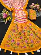 nirave fashion Printed Daily Wear Cotton Linen Saree (Cream)
