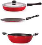 NIRLON Cooking Pots and Pans Non-Stick Cookware Set 3-Pieces Concave Tawa 28.5cm, Fry Pan with Steel Lid 2 LTR, Kadai 1.5 LTR only Gas Cooktop Compatible "Premier Quality" Non-Stick Coated Cookware Set (Aluminium, 3 - Piece)