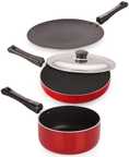 NIRLON Kitchen Non Stick Cookware Sets Combo Offer Concave Tawa, Fry Pan, Sauce Pan Utensils - Pots & Pans set Non-Stick Coated Cookware Set (Aluminium, Stainless Steel, 3 - Piece)