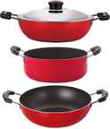 NIRLON Non-Stick 3 Piece Gas Compatible Odor Free Cookware Combo Offer Set Non-Stick Coated Cookware Set (Aluminium, 3 - Piece)