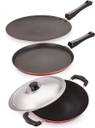 NIRLON Non-Stick Cookware Set (Dosa Tawa, Roti Chappati Tawa, Appachatti) Pans and Tawas, Pots - Kitchen & Dining Como Non-Stick Coated Cookware Set (Aluminium, 3 - Piece)