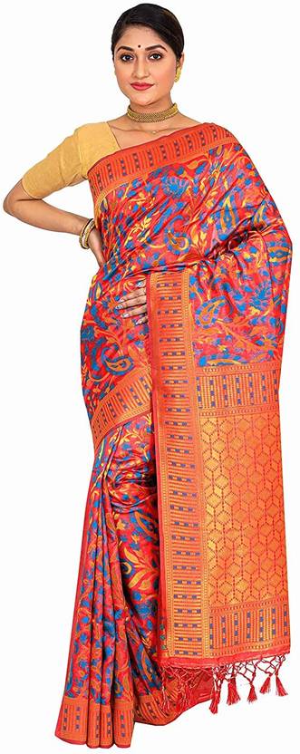 Embroidered Chanderi Art Silk Saree (Multicolor)