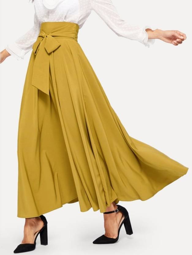 Women Solid Flared Yellow Skirt
