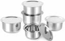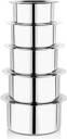 Nirvika Stainless Steel Tope/Top Set with Lid 22 Gauge Heavy Flat Bottom Patila Set of 10 (5 Pieces Top and 5 Piece Lid) Cookware Set/Pot Pan (Induction and Gas Compatible)(Size: 3100 ML, 2400 ML, 1750 ML, 1400 ML, 1100 ML) Tope Set with Lid 3.1 L, 2.4 L, 1.75 L, 1.4 L, 1.1 L capacity 23 cm diameter (Stainless Steel, Non-stick) Dish Serving Set (Pack of 5)