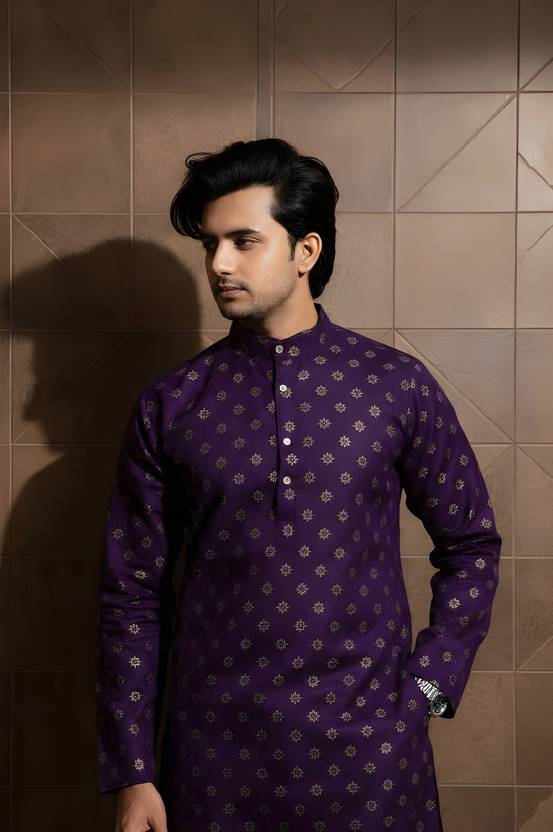 Nirwear creation Men Printed Straight Kurta (Purple)