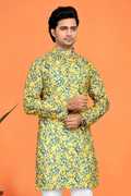 Men Printed Cotton Blend Straight Kurta (Yellow)