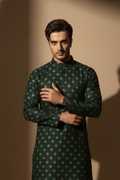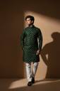 Nirwear creation Men Printed Cotton Blend Straight Kurta (Green)