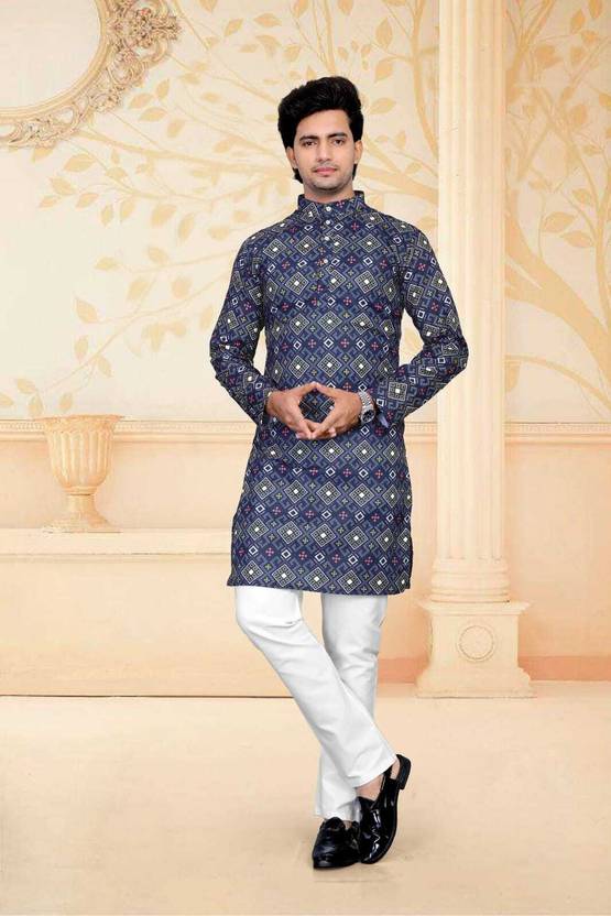 Printed Fancy Kurta for Men.Buy mens kurta Online at best prices .This Trendy and attractive Kurta that comes in a solid pattern. It has a Hand Printed design that enhances your look.This Kurta you can try with White Pyjama of your choice to create a Ethnic look. We are here to make your style rule in the minds of people, Ultimate Etnic fashion crafted with 100% cotton . Casual wear and Fastive wear both. its specially design for #Ganesh#puja,wedding,haldi,dewali,durga puja etc