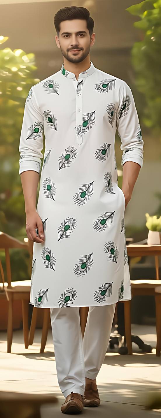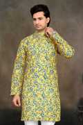 Printed Fancy Kurta for Men.Buy mens kurta Online at best prices .This Trendy and attractive Kurta that comes in a solid pattern. It has a Hand Printed design that enhances your look.This Kurta you can try with White Pyjama of your choice to create a Ethnic look. We are here to make your style rule in the minds of people, Ultimate Etnic fashion crafted with 100% cotton . Casual wear and Fastive wear both. its specially design for #Ganesh#puja,wedding,haldi,dewali,durga puja etc