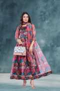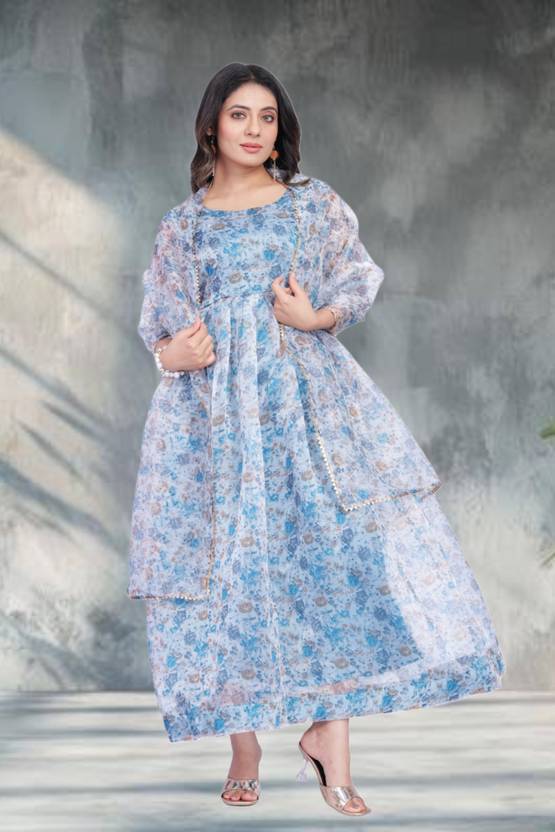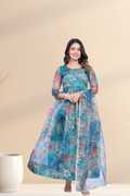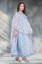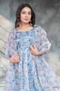 Printed Organza Stitched Anarkali Gown (Light Blue)